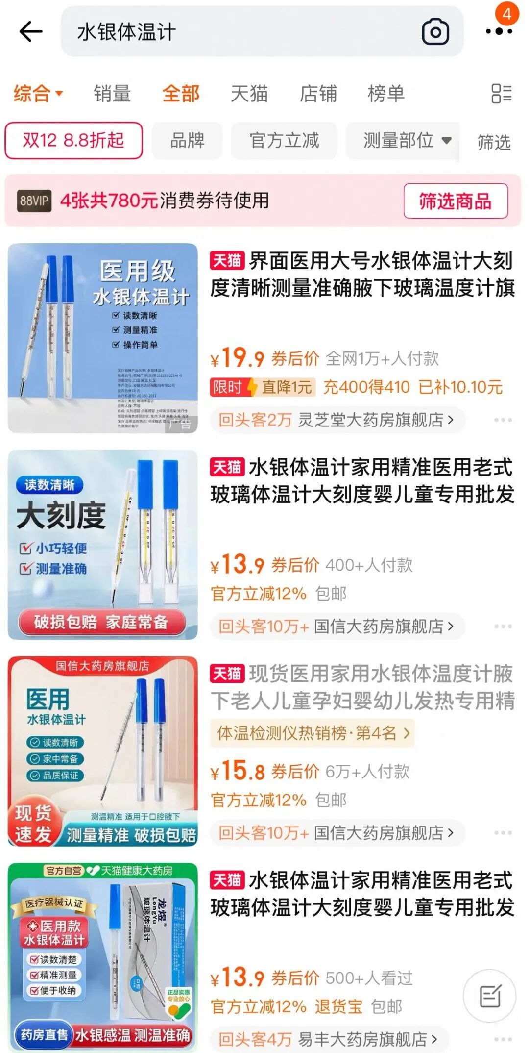 11日,记者在某集会购物平台以“水银体温计”为要津词进行搜索,表示,现在水银体温计多量在十几元之间,价钱略有高潮,但货源足够,并不像一些网友所说的,需要“抢购”。