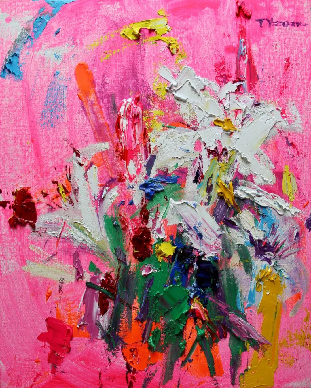 2023年,油画作品《暖炎风铃》入选法国罗浮宫“温度:现代艺术展”。