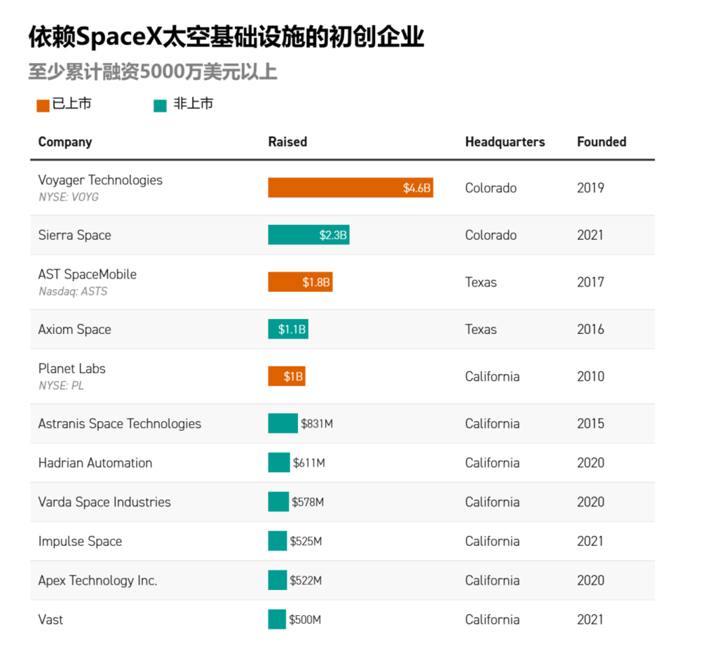 比较之下,SpaceX还是在这一方进取完成了关节跃迁。凭借垂直整合情势,它不仅是辐射工作提供者,更成为好意思国通往天际经济的“链主”企业。许多初创企业围绕它的辐射与卫星互联网寻找诈欺场景,也许还应该算上改日的天际数据中心。近十年来,好意思国的投资者还是向受其带动的近50家初创企业下注了至少80亿好意思元。与此同期,SpaceX还在并购以补皆核心门径。