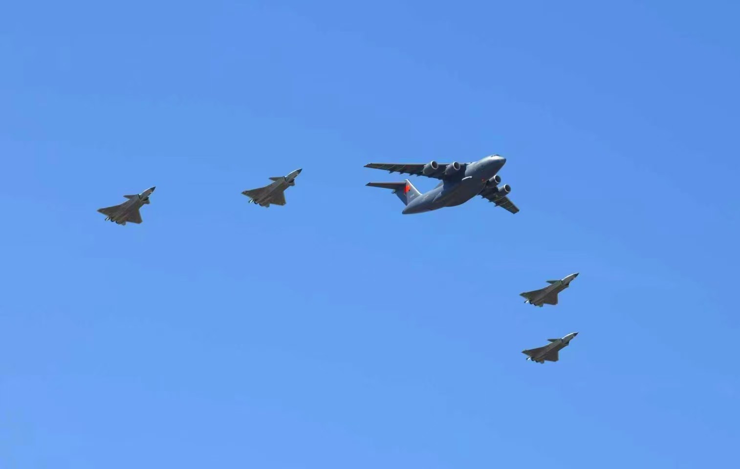 呼号“荣归50”的运-20B一投入中国领空,呼号“红鹰”的4架歼-20便迎上来护航。“双20”布阵漫空向你问候,也请你见证:漫空有盾,护卫中华。